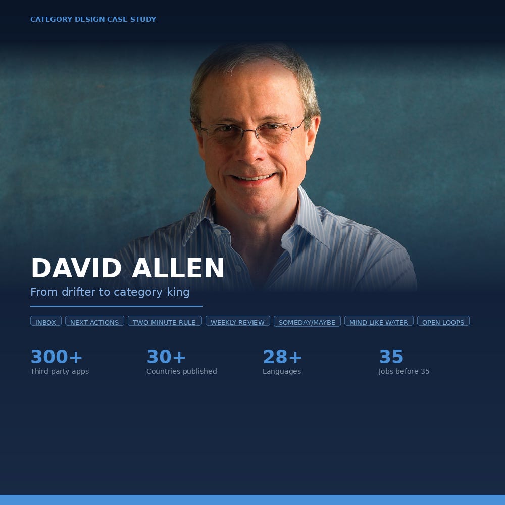 David Allen, an individual with a messy, meandering career, created a new category - the “GTD” category - despite his apparently aimless trajectory.
